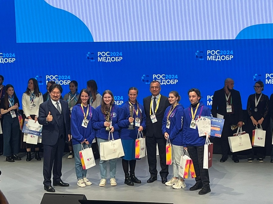 В Москве состоялось награждение победителей «ФИДЖИТАЛКВЕСТ-2024» – первых медицинских игр будущего в России, прошедших в условиях виртуальной реальности и физической симуляции. Сборная университета в составе пяти студентов IV и V курсов специальности «Лечебное дело»: