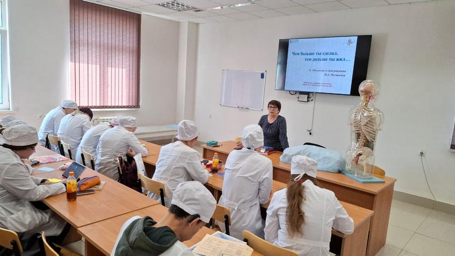 Жизнь и судьба П.А. Мотавкина, и особенно военные воспоминания (из книги «Командир санвзвода»), были представлены обучающимся 1 курса специальностей «стоматология профилактическая», «сестринское дело» факультета СПО и 101-102 группы специальности «медицинская биохимия» в рассказе заведующей сектором БИЦ Чарыковой Н.Ф.