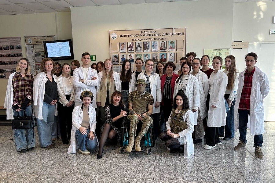 В рамках цикла мероприятий, приуроченных к Году защитника Отчества, на кафедре общепсихологических дисциплин состоялась встреча студентов-медиков с участником боевых действий в зоне СВО.