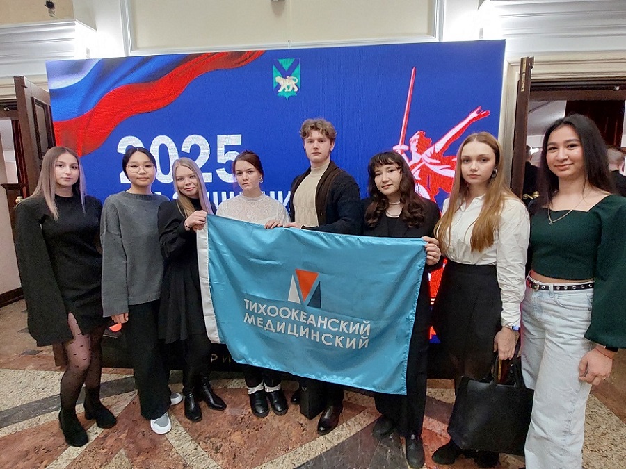 Начиная с января, по всей России прошли торжественные мероприятия, посвящённые открытию Года защитника Отечества. Одно из них состоялось и в Приморском крае, где гостями стали участники СВО, ветераны локальных вооружённых конфликтов, активисты патриотических и молодёжных движений края. Посетили торжественное открытие и обучающиеся Тихоокеанского Медицинского: Егор Буданцев, Дарья Ветрова, Екатерина Деделова, Яна Ковальчук, Вероника Морозова, Сарвиноз Рустамова (факультет СПО), Алексей Поветкин (факультет общественного здоровья) и Ангелина Михеева (лечебный факультет).